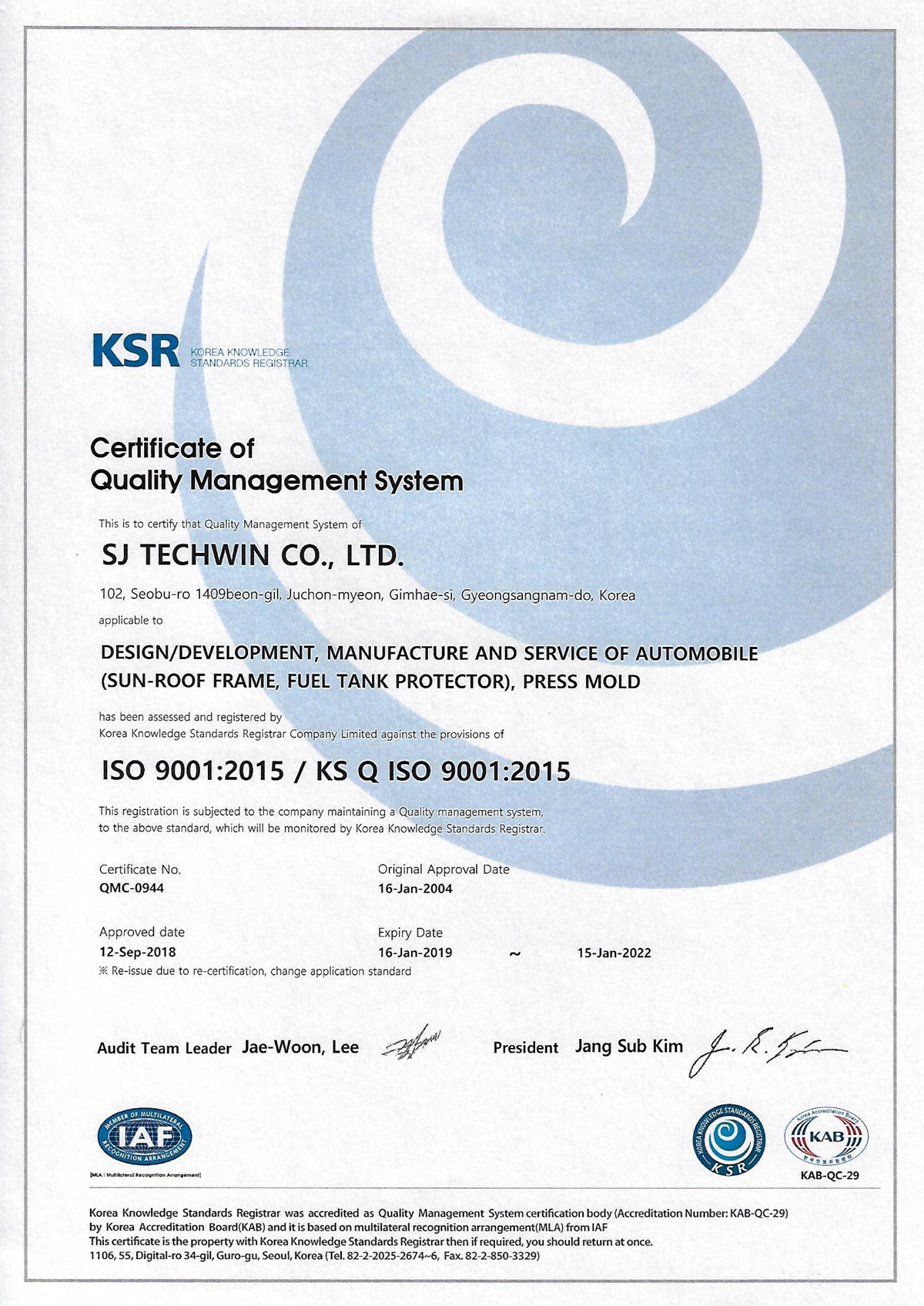 3. ǰÁú°æ¿µ ½Ã½ºÅÛ ÀÎÁõ¼(ISO 9001) / SQÀÎÁõ¼